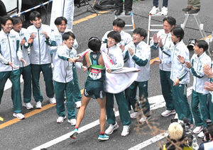 9区の倉本玄太(4年)もさらにリードを広げる区間賞の走りで、10区の宇田川瞬矢(2年)へ首位でタスキ渡し。往路の3区で先頭に立ち、そのままゴール地点の大手町へと帰ってきた。